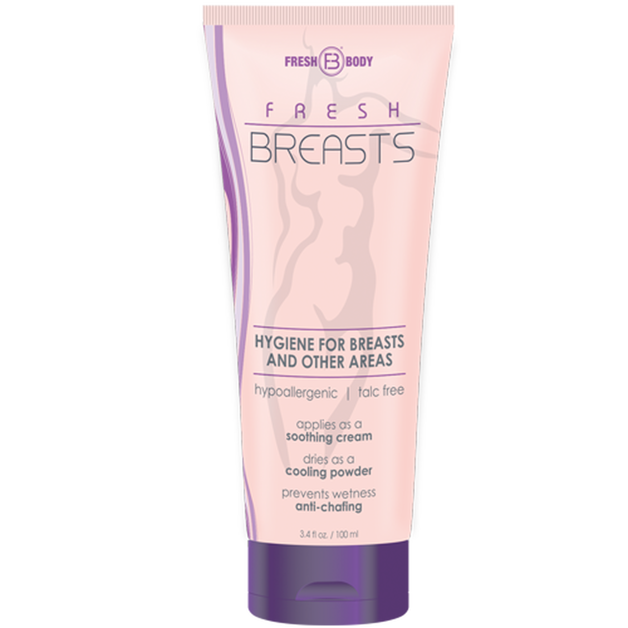 This revolutionary cream-to-powder formula is designed to help prevent stickiness, sweatiness, and chafing around a woman’s breasts and anywhere else a woman might need it. Applies as a soothing cream and dries as a cooling powder. Fresh Breasts even contains aloe to soothe and nourish the skin to perfection. Hypoallergenic, Aluminum-Free, Paraben- and Talc-Free. 3.5oz